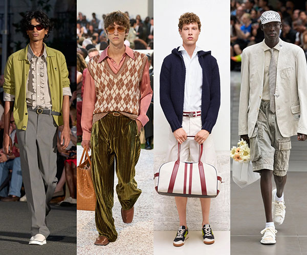 En las próximas temporadas, la moda masculina oscilará entre un estilo elegante y formal, con sastrería de siluetas relajadas y el uso de estampados, y propuestas casuales que van desde el estilo preppy hasta la integración de prendas deportivas con un toque urbano.