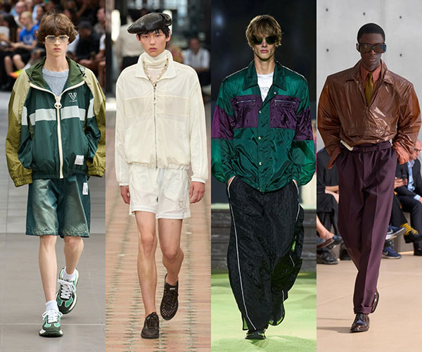 En el terreno de las prendas técnicas, los cortavientos se consolidan como una de las tendencias clave. Maison Mihara Yasuhiro y Casablanca presentan dos diseños combinados con prendas deportivas, creando un look de streetwear versátil e informal. Su apariencia sport no impedirá combinarlos con sastrería o total looks más formales, logrando un resultado elegante y con estilo. En este caso, Saint Laurent y Wales Bonner muestran distintas fórmulas para adaptar la prenda a cualquier ocasión.