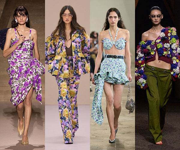 La vuelta de la estética boho chic de la década de 2010 ha recuperado algunos códigos propios de la moda retro de los años sesenta. En la colección de Chloé destacan vestidos y blusas florales en tonos azules, rosas y morados, un estilo que también aparece en las colecciones de Zimmermann y Rabanne. McQueen toma otro camino integrando la tendencia de las texturas en un cárdigan de punto repleto de flores.