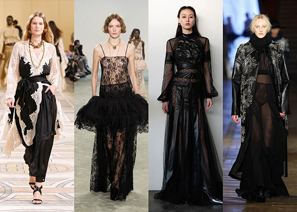 Con una vuelta a los códigos más populares de los 80, la moda femenina de esta temporada se moverá entre la fuerza de las hombreras, los abrigos de pelo o los conjuntos de piel y una estética delicada y de misterio a través de vestidos oscuros con encaje, reinventando el boho chic más gótico.