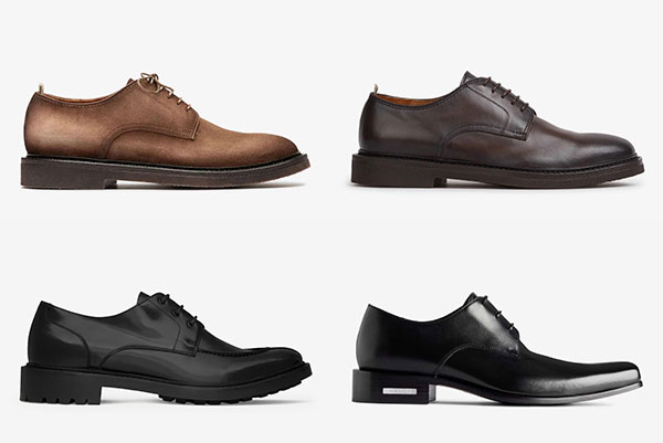 El estilo sofisticado actual se consigue dando un nuevo significado a piezas habitualmente asociadas al vestuario más formal. En el caso de los hombres, esta próxima temporada predominará el zapato derby, que se diferencia del oxford por llevar la cordonera abierta por encima del empeine. Para uso diario, Officine Creative presenta un modelo disponible en ante y en piel. Y para las ocasiones más formales, o para combinar con una gama cromática oscura, Saint Laurent y Balenciaga apuestan por el clásico negro de piel.