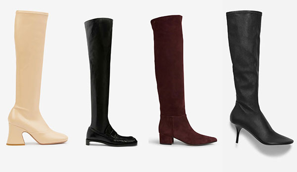 La vuelta de la moda de los 60 y 70 ha rescatado las botas altas, aquellas que puso en el foco Courrèges y Saint Laurent, con una silueta ajustada y alternando diferentes tipos de tacón. Cada una de las firmas que se ha sumado a la tendencia lo ha hecho de manera diferente. Chloé se decanta por la visión retro con unas botas de color crema y tacón grueso, Jil Sander transforma su mocasín añadiendo una caña ajustada, Gianvito Rossi presenta la clásica bota con tacón bajo y Acne Studios apuesta por la punta y el tacón fino.