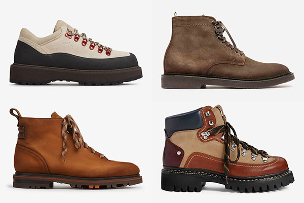 Del Corpcore anterior pasamos al Gorpcore, el nombre que alude a los estilismos inspirados en las piezas de montaña y reinventadas para su uso diario. Esta temporada los hombres incluirán botas con cordones para aportar un punto moderno. Existen diferentes propuestas, desde los botines de cuero marrón más sutiles que firman Officine Creative y Santoni, hasta los diseños de Diemme y Dsquared2 que transforman el calzado de montaña con un toque urbano.